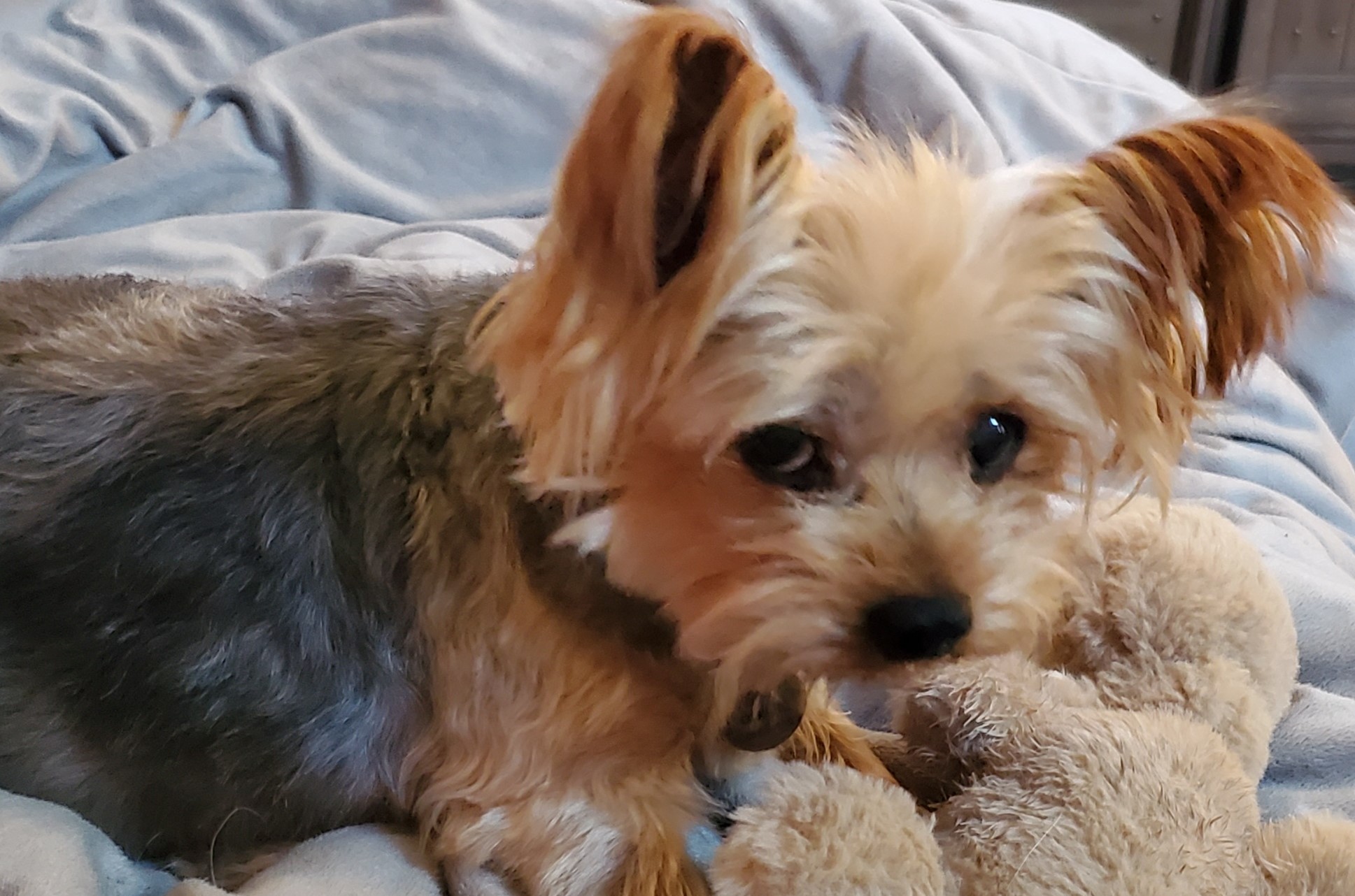 Butterbean was a brave soul who unlike Sadie tragically was not as fortunate as Sadie. Butterbean spent her entire life in a horrific puppy mill having an estimated 150 or more puppies in the 9 years they believe she was trapped. She had never been out of a cage and was covered in crate marks on her body, fatty tumors and back legs that were crippled since she was unable to move around at any point in her life. She was abandoned at a local humane society tied to the door with a not to please destroy. Butterbean was in terrible shape but the people at the shelter saw a spark in her and called Leann asking her to provide end-of-life comfort for this little yorkie. As soon as Leann saw her, she named her Butterbean and was determined to give this sweet girl a few weeks of pure love and comfort. Those few weeks turned into nearly 3 years of joy. The veterinarian who had cared for her determined she had been living with some internal organ damage caused from her rough life. She died peacefully in Leann’s arms at the veterinarian’s office.